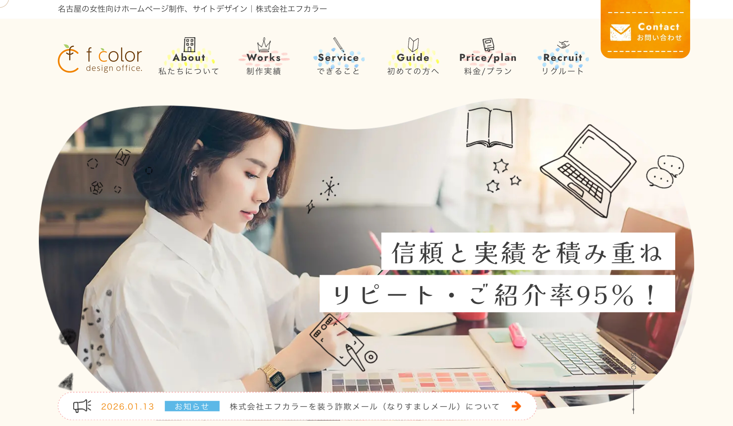 愛知県名古屋市を拠点に、女性目線の戦略設計とデザインを強みとするホームページ制作会社です。